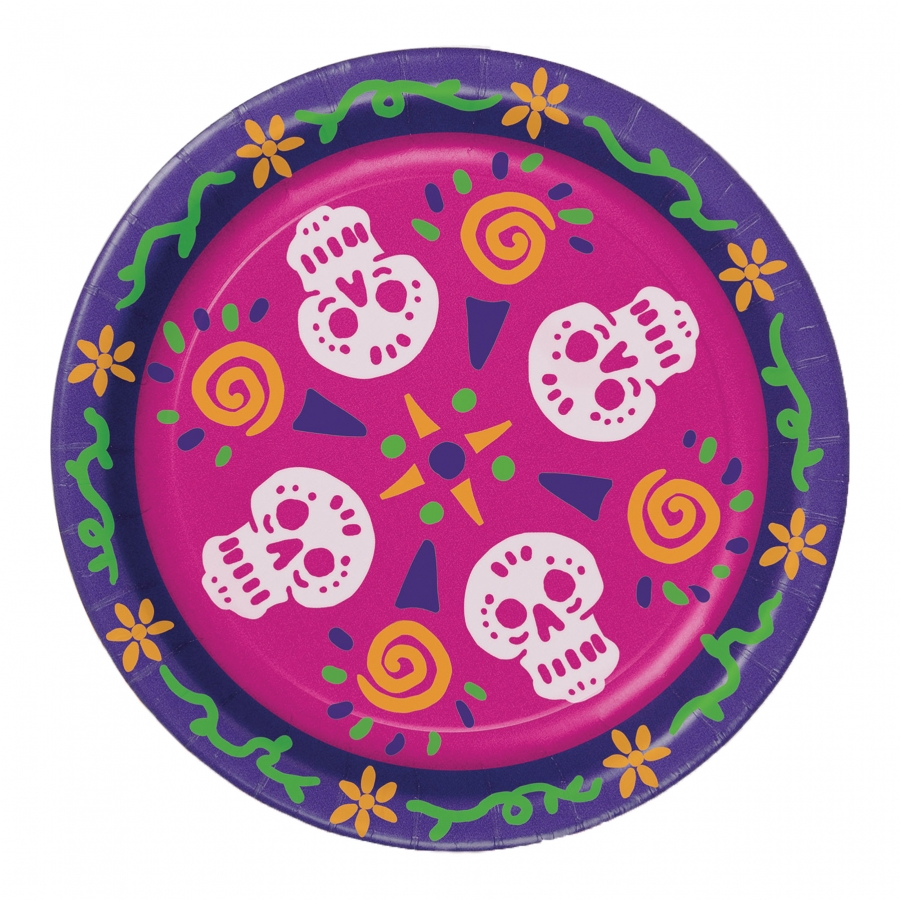 DAY OF THE DEAD PLATES. Wonderfully festive plates perfect for a Day of the Dead celebration! Very colorful. 8 plates per package. Paperboard. 9 inches.