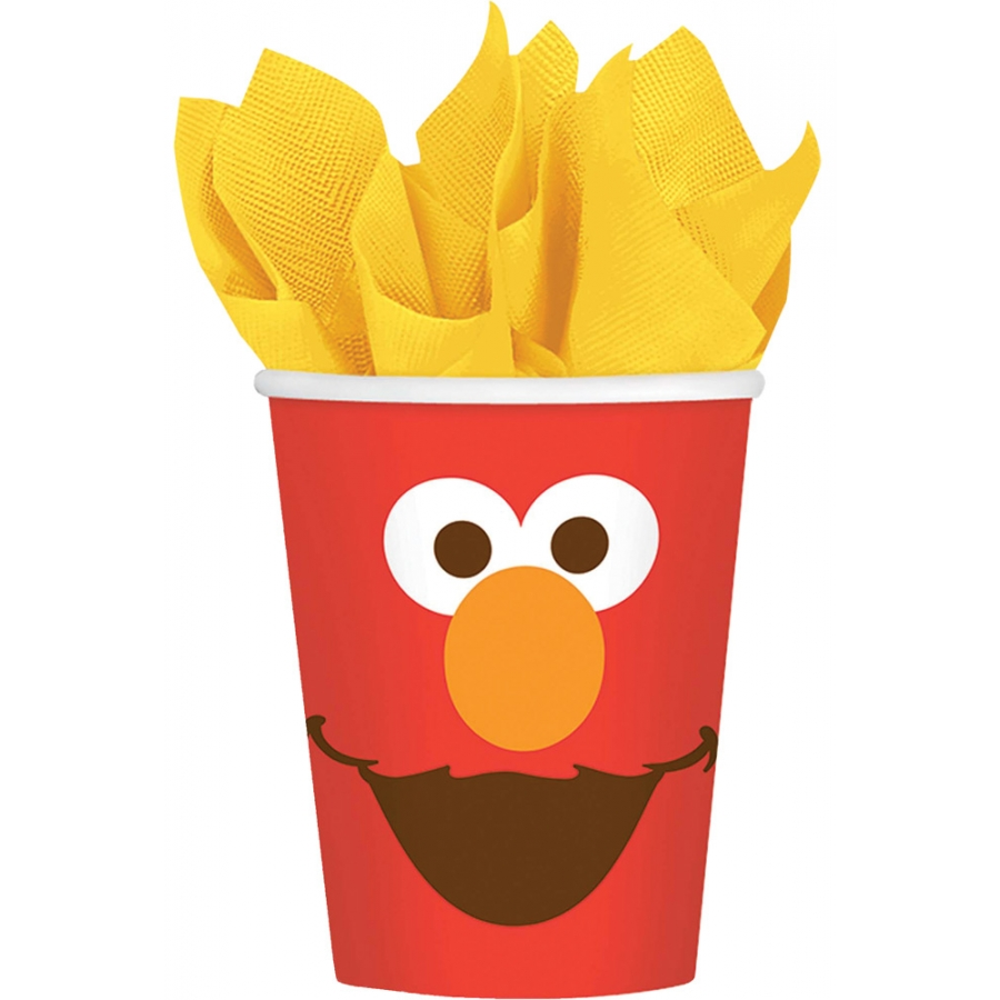 ELMO 1ST CUPS 9OZ 8 PACK. Sesame Street Elmo Package includes (8) paper cups to match your party theme. Cups are versatile enough to serve warm or cold beverages. Each holds 9 fl. oz.