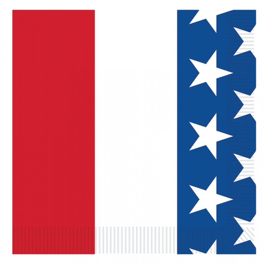 PATRIOTIC NAPKINS BEVERAGE 16. Great napkins which would be perfect for any patriotic event like the 4th of July, veterans events, or just about any holiday. Paper. Red, white and blue with stars. 16 to a package.