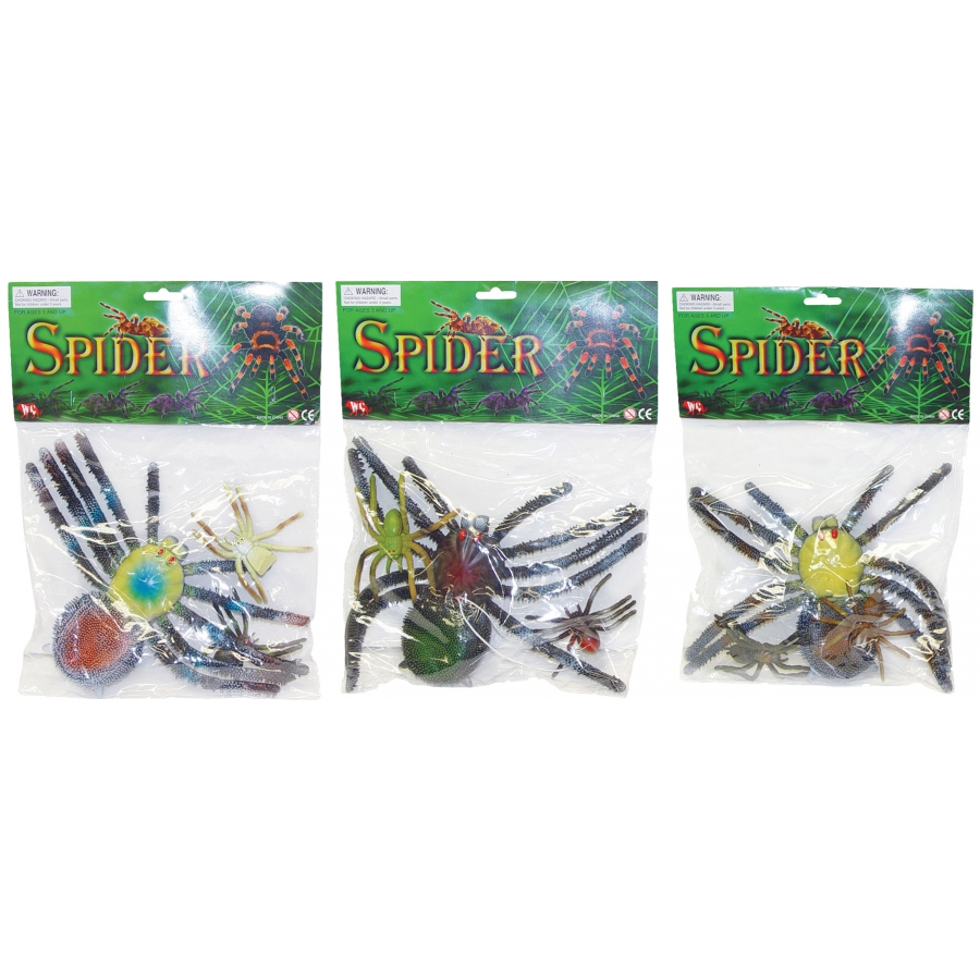 SPIDERS RUBBER ASSORTED. Great for scattering around your home haunted display, a haunted house, or just to scare your friends. Bag contains 3 spiders – 2 small and one large.